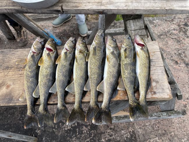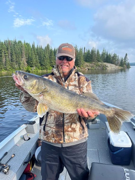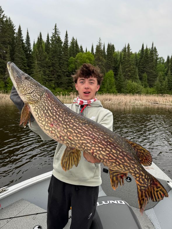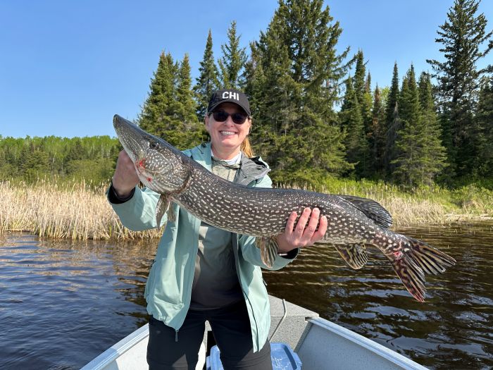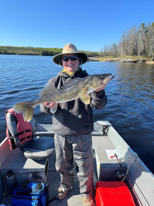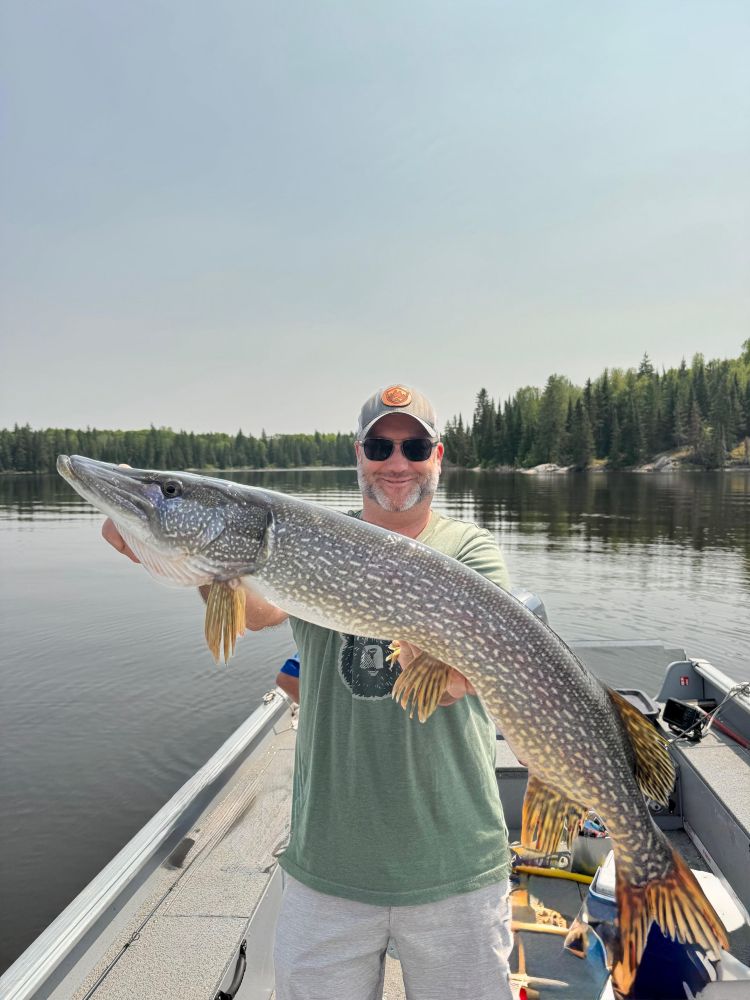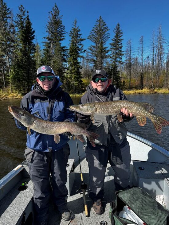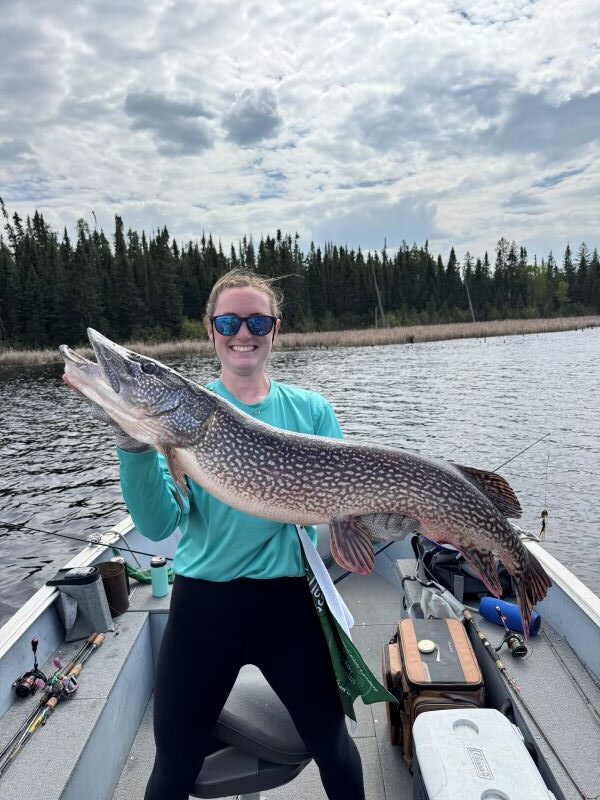 Fishermen were arriving daily and testing out the waters in 2025. The fishing was fabulous!! There was lots of good-sized northern pikes caught. Caribou Falls Landing guests fished new waters while staying at Kettle Falls. They had some great fishing and learning new areas. The largest pikes measured in at 45″-Jimmy caught a big ol’ one -just don’t ask his wife as it might have been a ‘friendly’ fishing competition week-they caught numerous fish 39, 40, 42 and 45″! The other big 45’er was caught by another wife/husband duo were fishing and Doug landed a ginormous pike! It was great to see lots of returning customers this year at Kettle. Dave was there fishing again with his son and WOW they had amazing fishing-they have been here before but the said this years fish were the biggest ever and they were catching loads of fish!! It was so great to hear everyone’s fishing stories-and let’s not forget about the fishing brothers Jerry and Barry-love seeing families get together and spend time fishing!