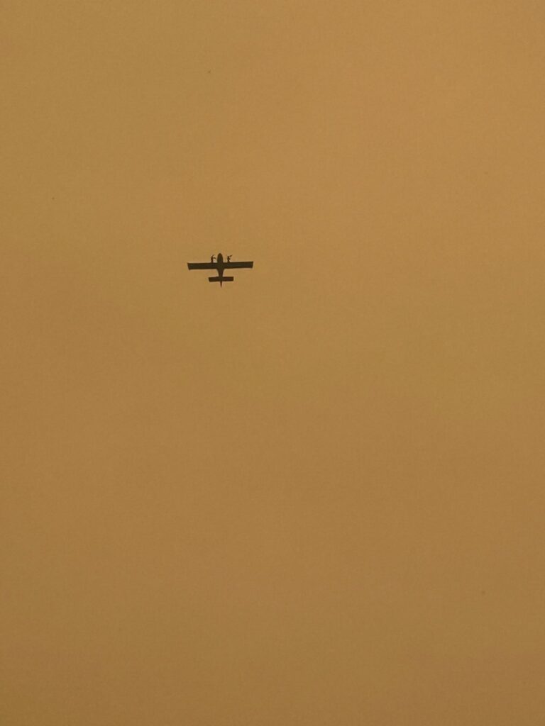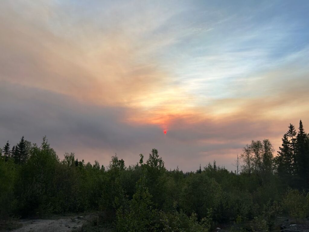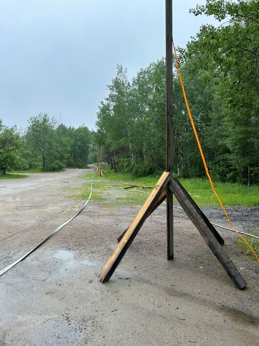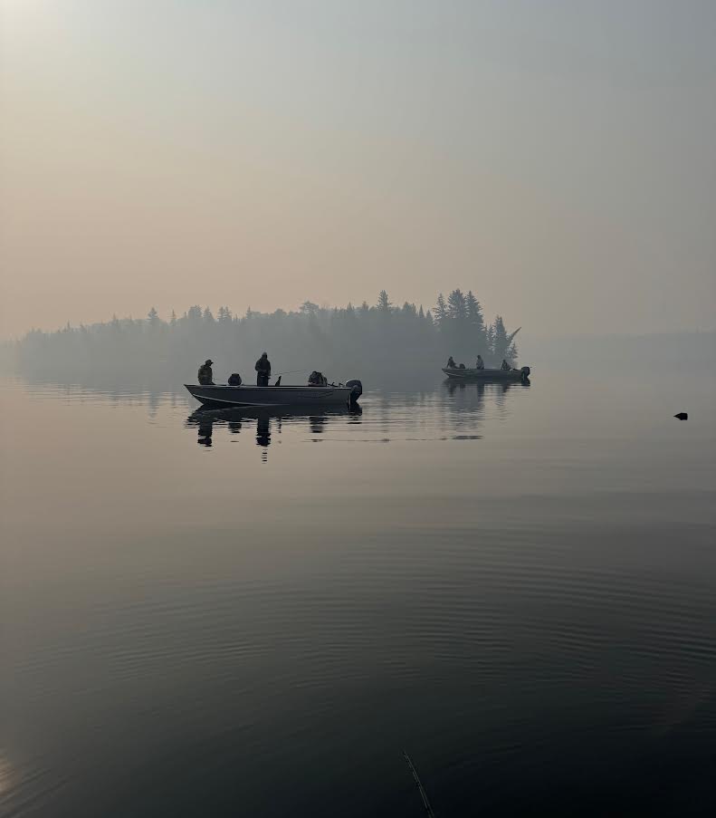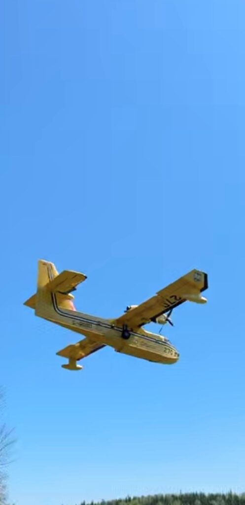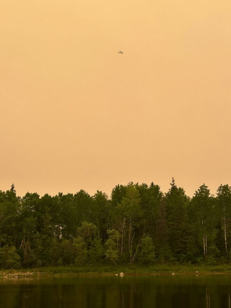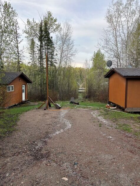 Unfortunately, a fire broke out on May 8, 2025, near Caribou Falls Landing, burning much of the surrounding area and parts of our driveway. Thankfully, the Ministry of Natural Resources managed to save our property. The next morning after the fire started and all crews were working on the fire, we requested clearance to access Caribou Falls by boat. We wanted to move one of our float planes to safety-away from the fire and the water bombers as they drop so much water with heavy force. Chris flew another pilot to One Man, took a boat to Caribou, and retrieved the plane before water bombers began their efforts. Sprinklers were set up as barriers to slow the fire, supported by water bombers from the air and foot crews on the ground. Fire crews camped nearby, refueling the water pumps to keep the sprinklers running. We would get updates from by looking at fire maps and also talking directly with the MNR almost daily. The fire came within 200 feet of one of our cabins and due to the fires and the wind, MNR was restricting access to the property for daily use. The extremely dry conditions caused additional fires in the area, leading to restrictions and travel restrictions at One Man, Caribou, and Dufaults. However, we received news from the MNR and were able to keep Kettle Falls Lodge and outposts at Trapline, Rex, and Moosehorn OPEN & operational.