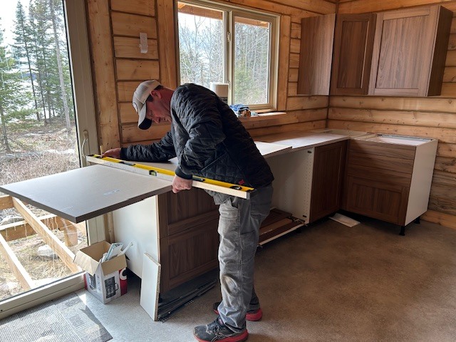 April was a gorgeous month for weather! We were able to work on our cabin across the ice at Dufault’s Island and see the progress daily. Chris, Jaden, Amber, Lisa, Gene and more were able to roll up their sleeves to get items crossed off the “to-do list.” The guests at Dufault’s Island Outpost are going to enjoy the new beautiful cabin. Here is a picture of the kitchen and some other amazing amenities!